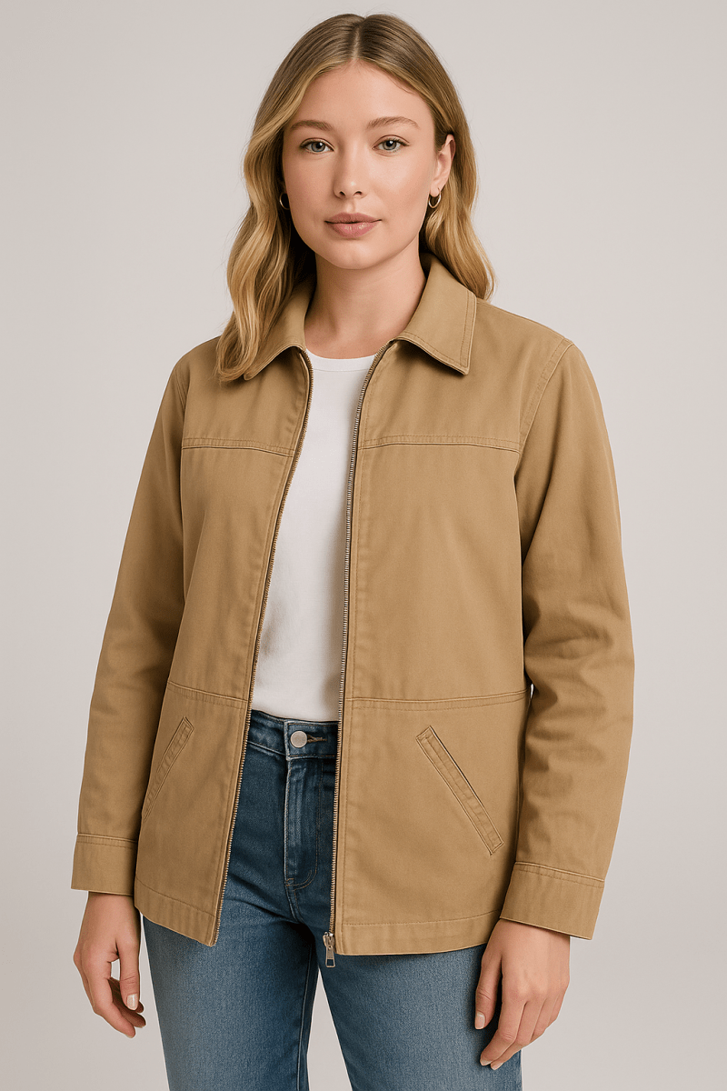 Vintage Lightweight Zip-Up Jacket in Classic Beige- Size: M