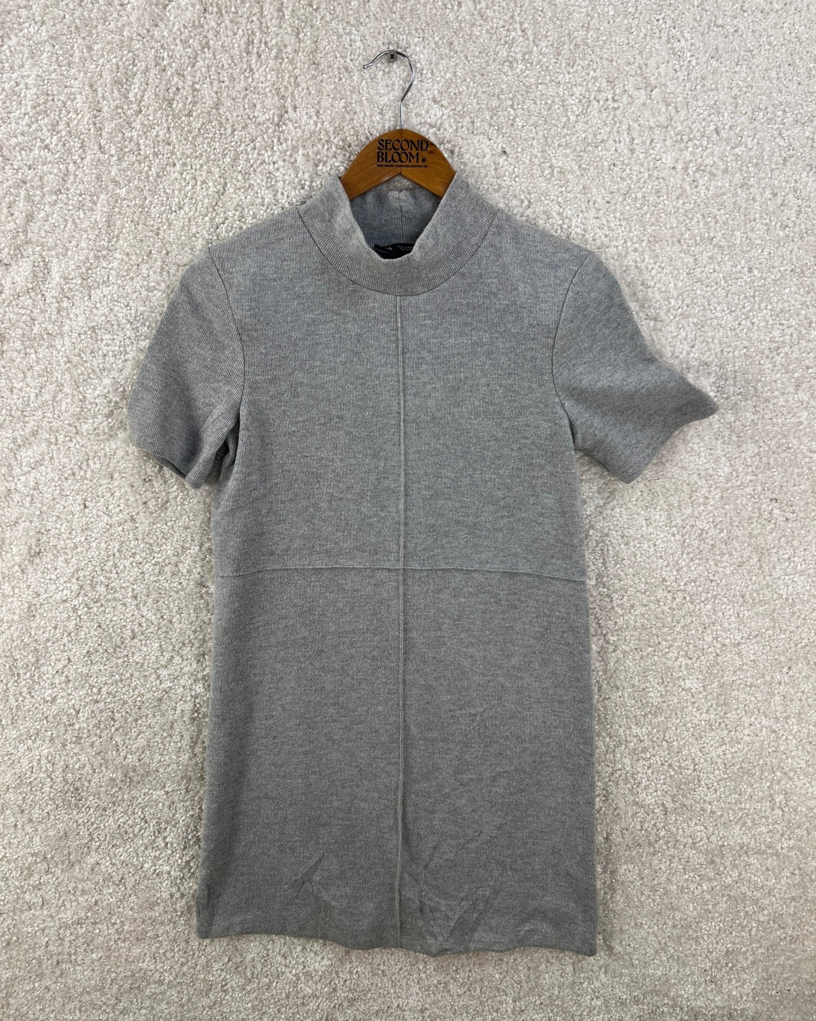 Ribbed Knit Mini Dress in Silver Grey- Size: S