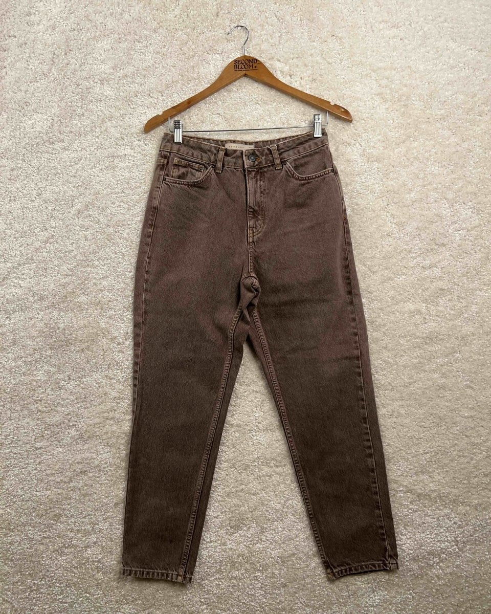 100% Cotton Mom Jeans in Reddish Brown Color- Size: