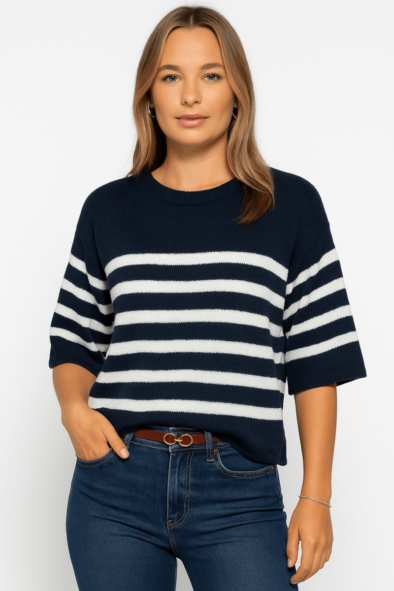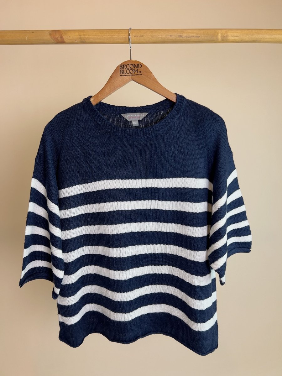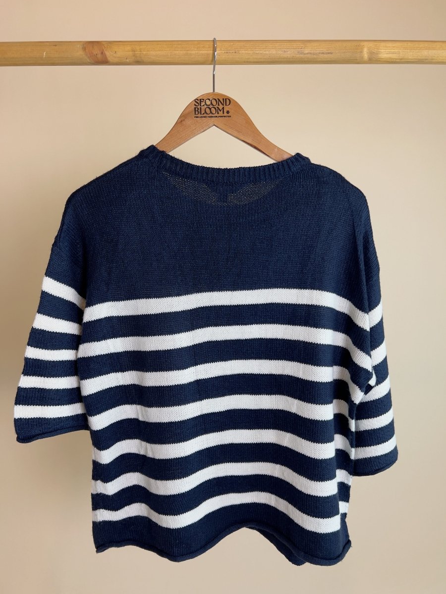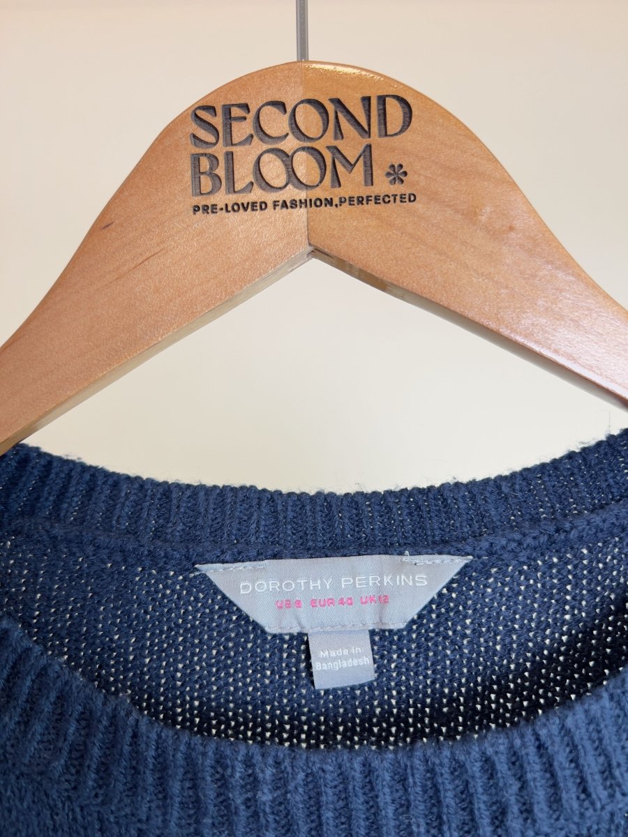 Dorothy Perkins Navy and Cream Knit Sweater - Size: M