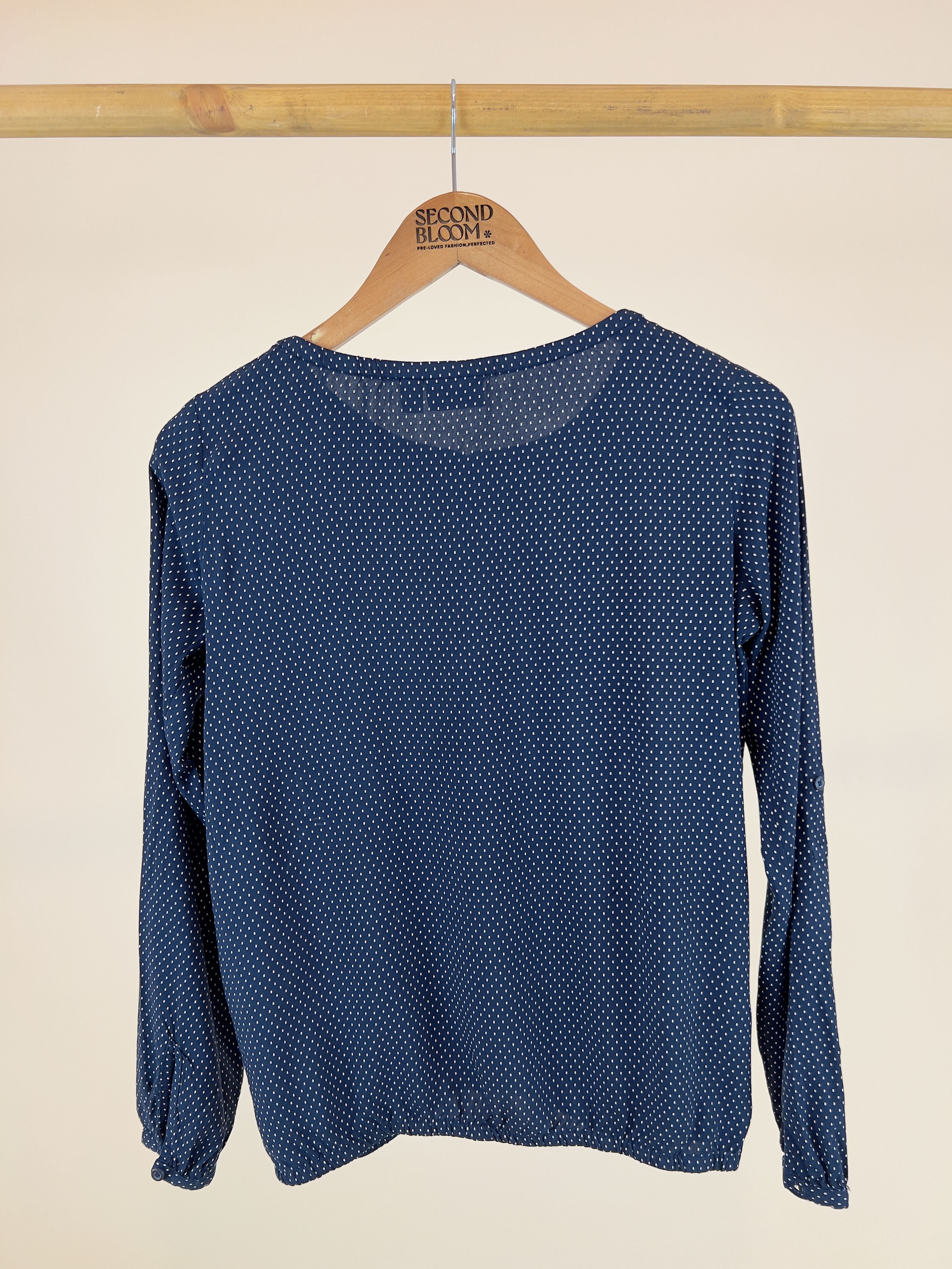 Navy Blue Blouse in Soft Viscose Fabric-Size: L