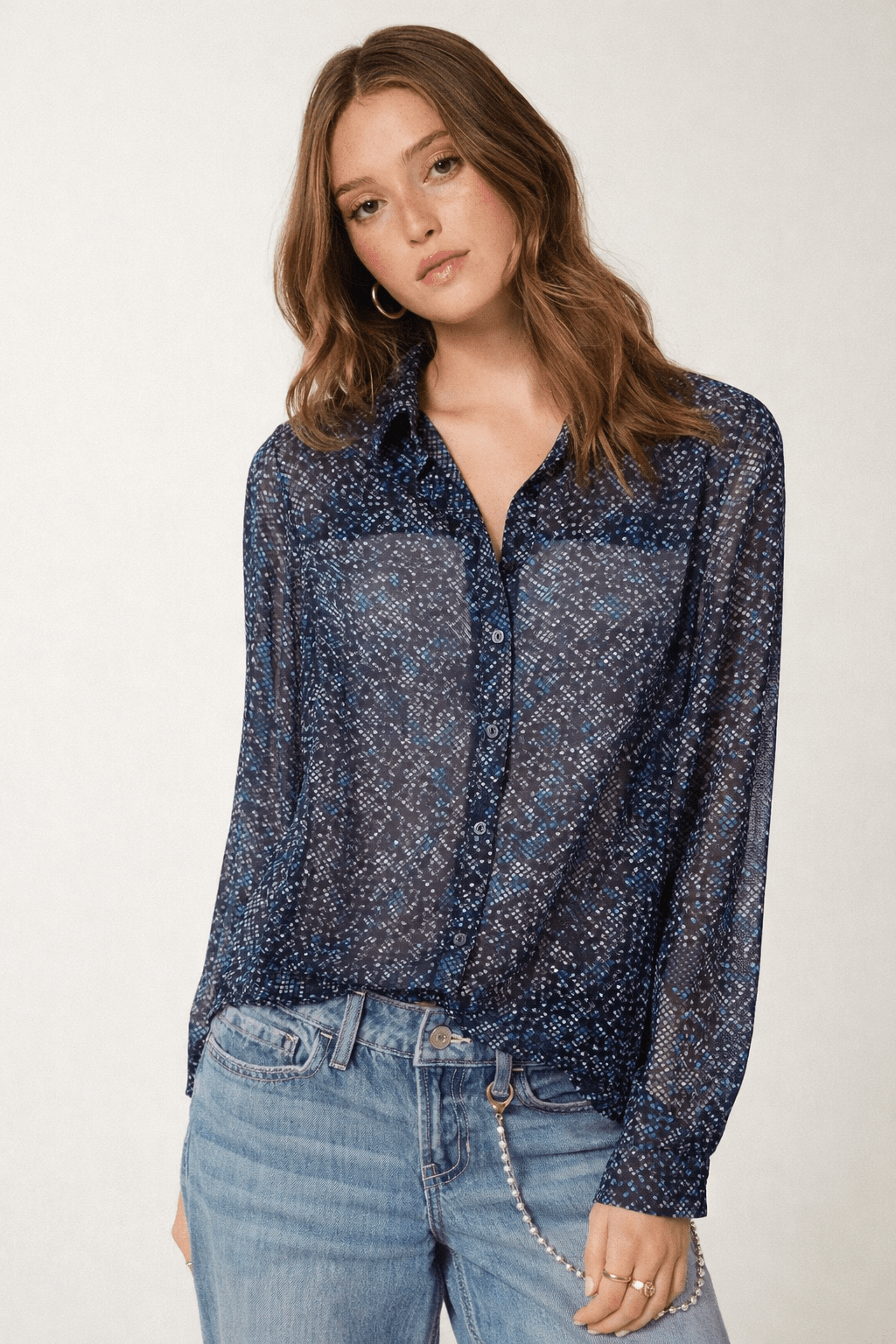 Navy Blue Blouse with an all-over Dotted Pattern - Size: S