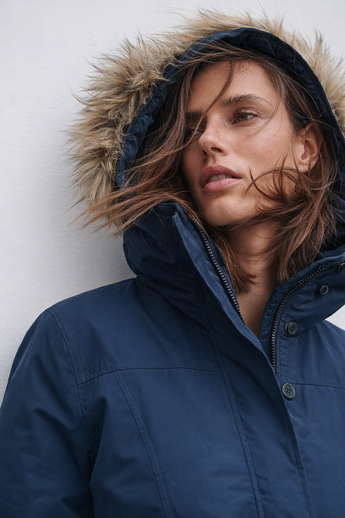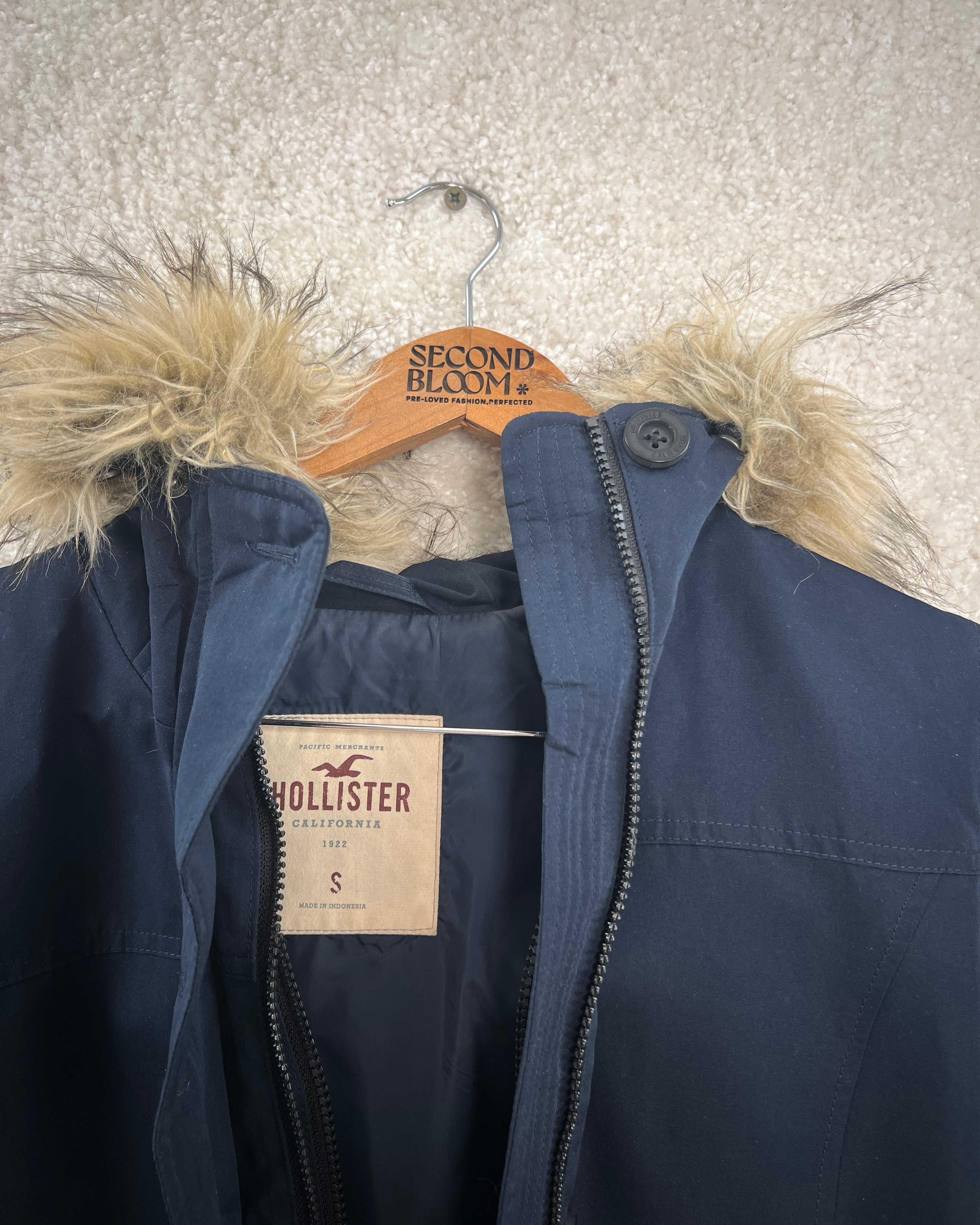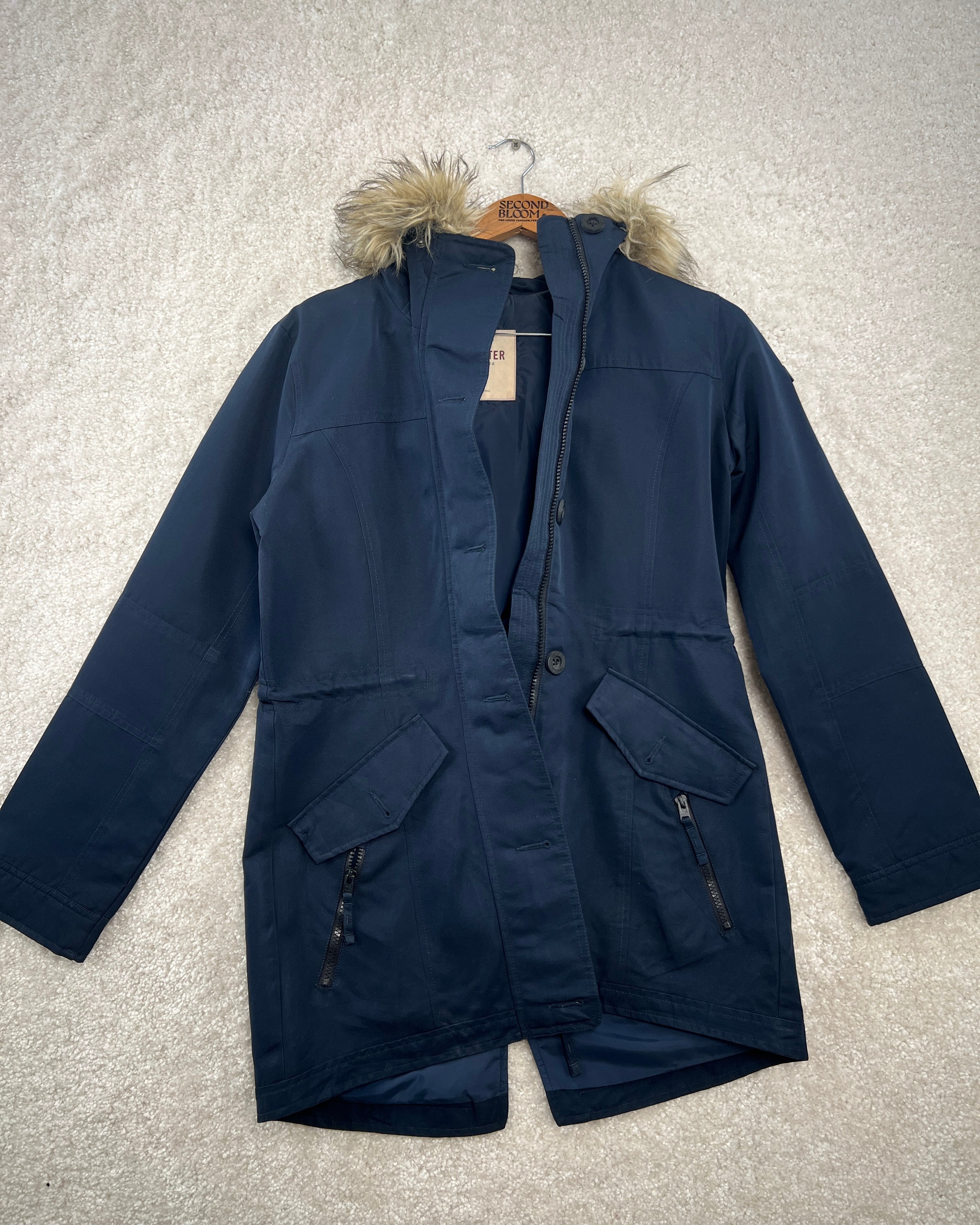 Hooded Parka Jacket in Deep Navy Tone- Size: S