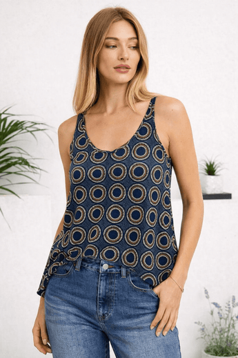 100% Viscose Tank Top with Geometrical Swirls- Size: S/M