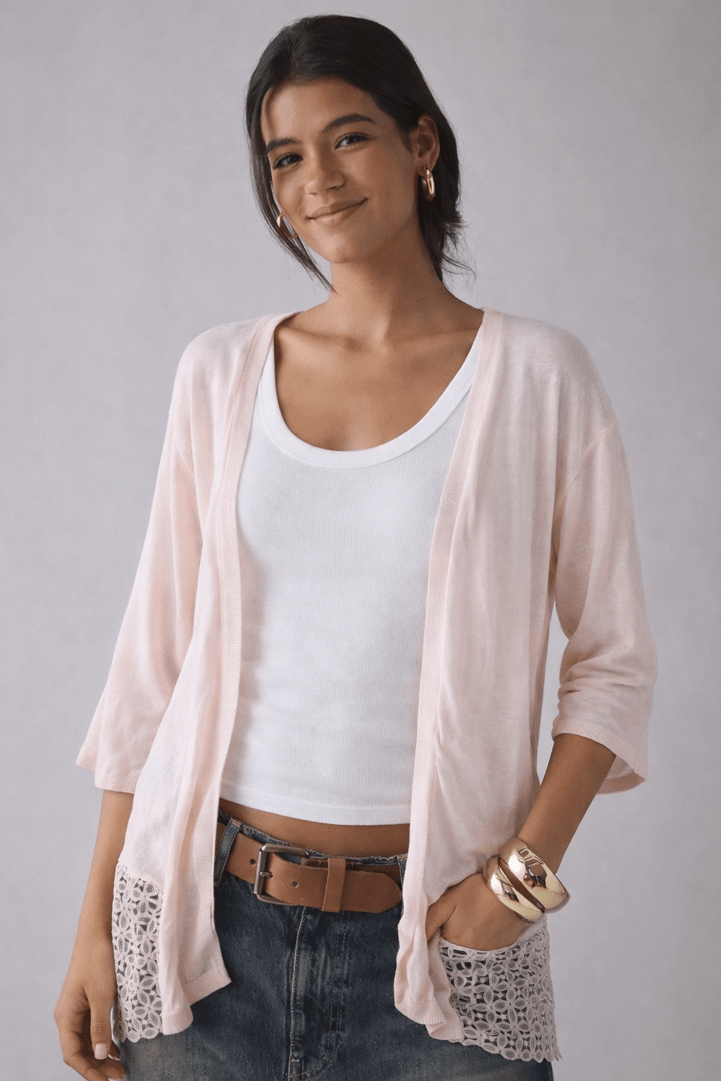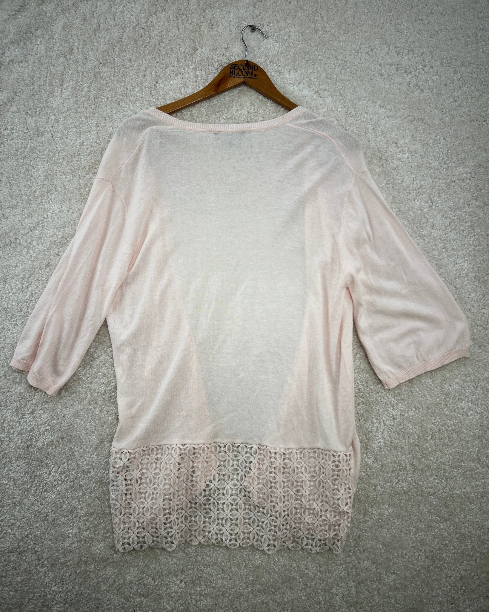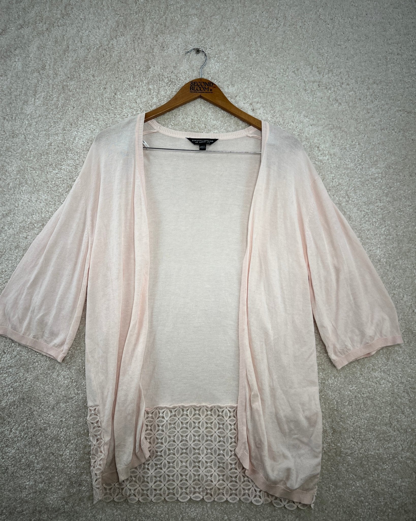 Cotton Viscose Cardigan with Decorative Lace Panel- Size: M