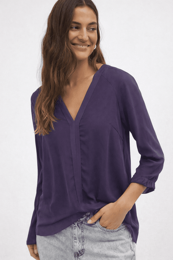 V Neck Blouse in Deep Burgundy- Size: XS