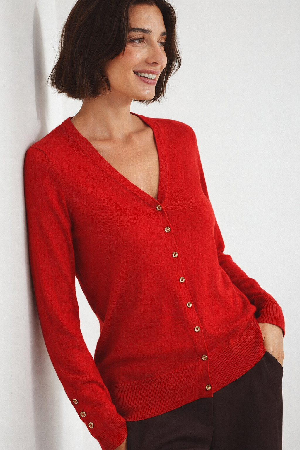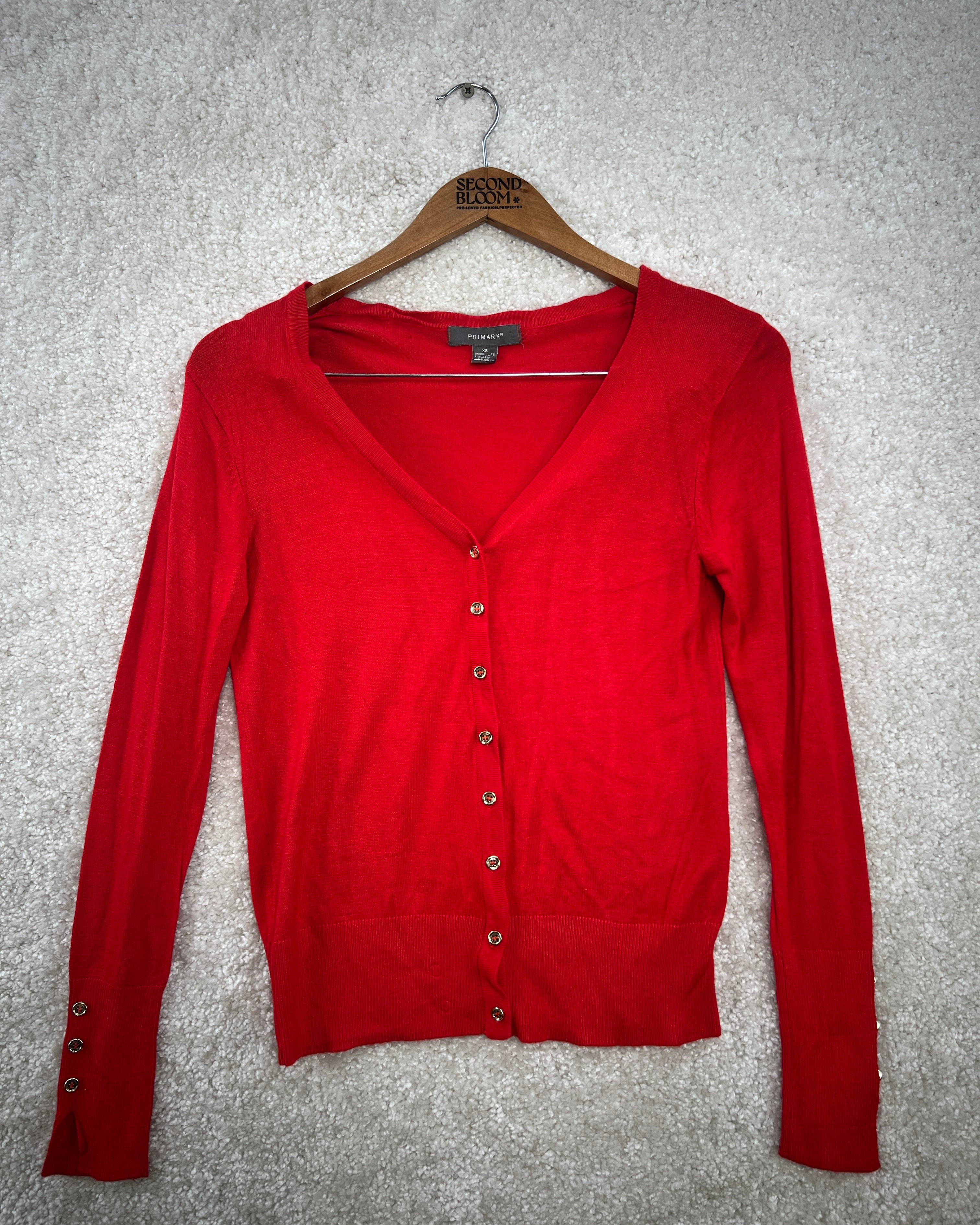 Vibrant Red Button-up Simple Cardigan - Size: XS