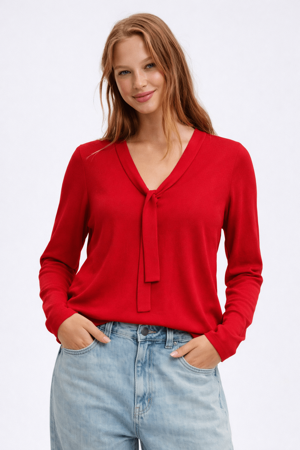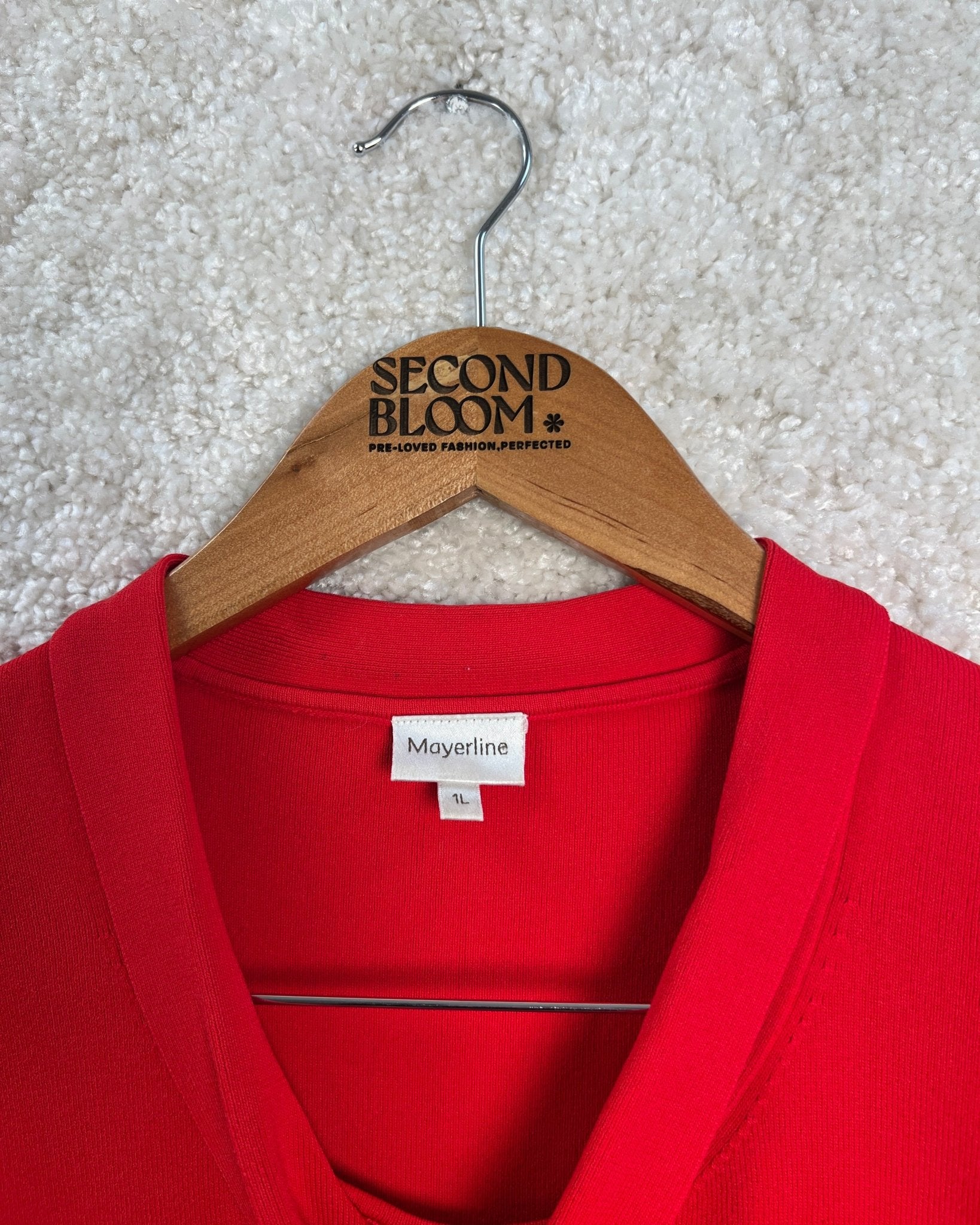 Vivid Red Sweater with Minimal Front Fasting- Size:M/L