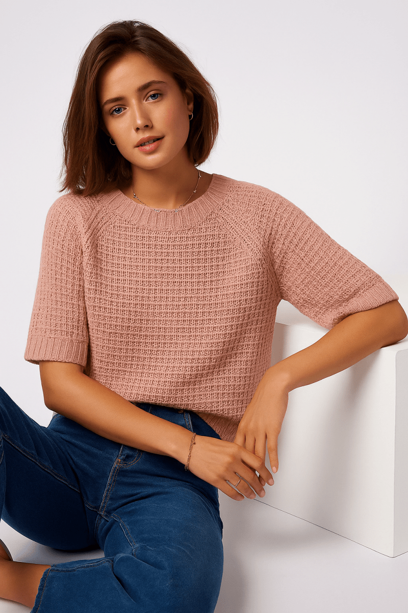 Crew-neck Sweater in Dusty Pink-Size: XXL