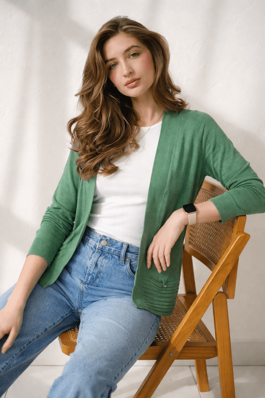 Open-Front Knit Cardigen in Cotton Viscose Blend-Size: M