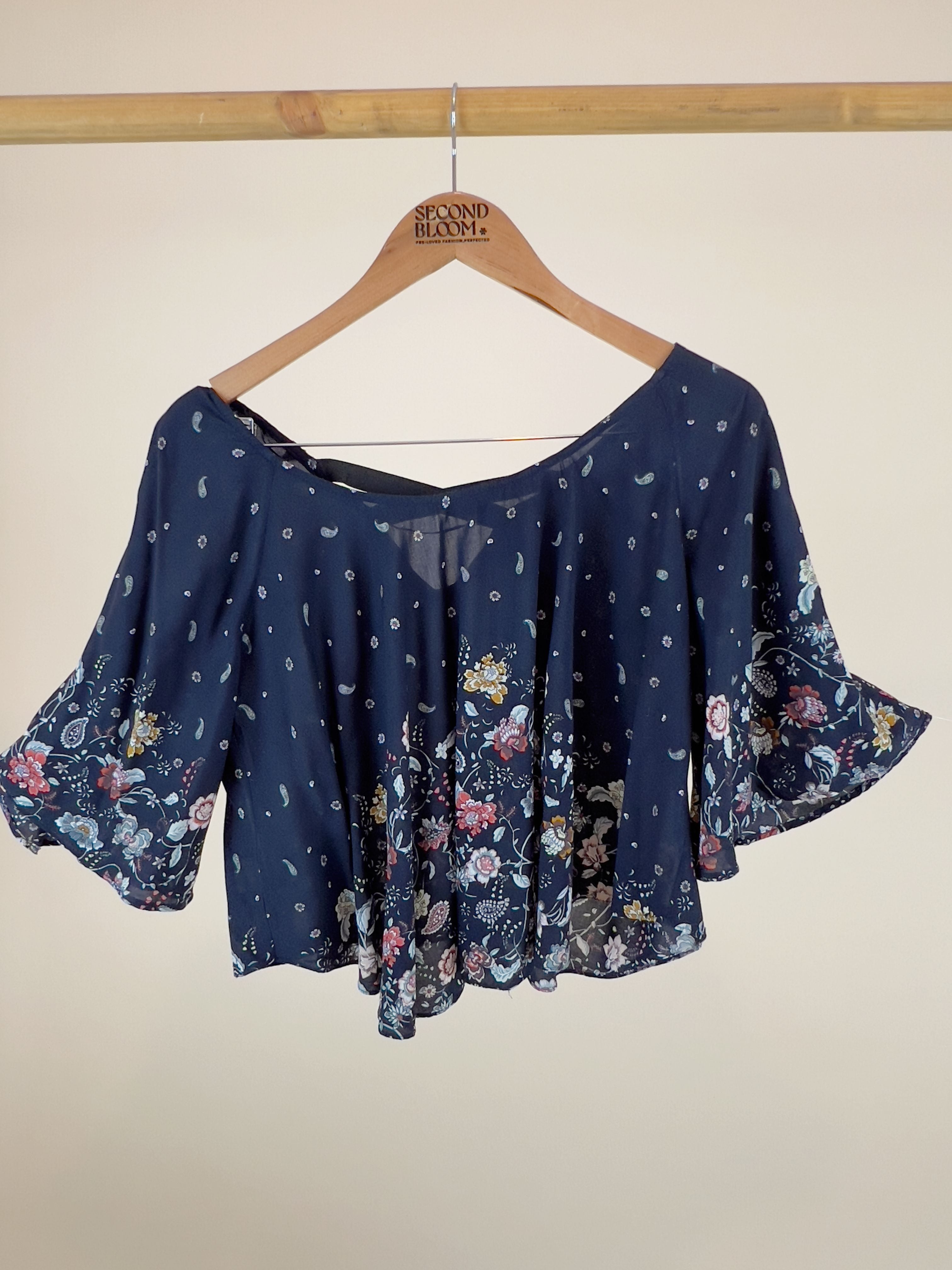 Viscose Cropped Top with Wide Bell Sleeves - Size: M