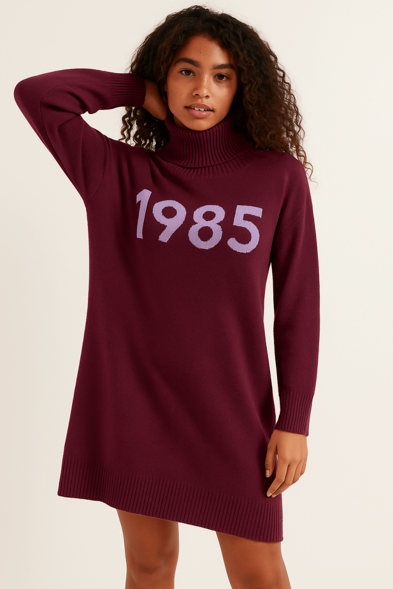 Wool Cashmere Jumper Dress in Rich Burgundy - Size: M