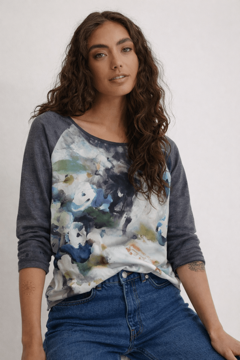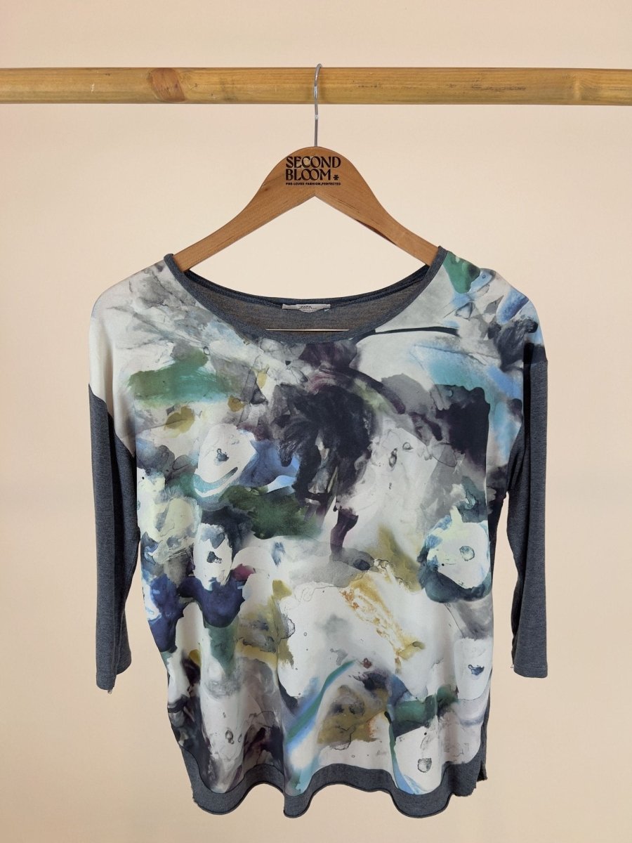 Zara Sweater in Grey Water Color Print - Size: M